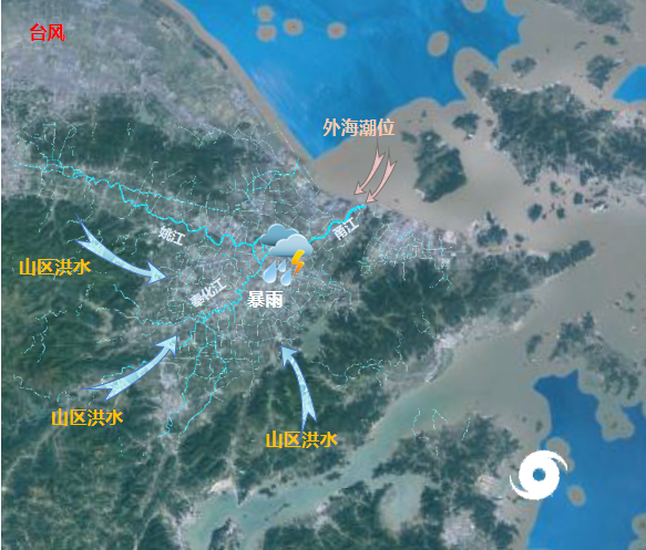 地形之困:地勢(shì)三面環(huán)山、一面臨海,三江干流穿城而過(guò),極易形成風(fēng)、暴、潮、洪“四碰頭”的不利局面。