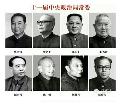 8月19日,黨的十一屆一中全會選出中央領導機構。華國鋒為中央委員會主席,葉劍英、鄧小平、李先念、汪東興為中央委員會副主席,并由他們組成中央政治局常務委員會。華國鋒、韋國清、烏蘭夫、方毅、鄧小平、葉劍英、劉伯承、許世友、紀登奎、蘇振華、李先念、李德生、吳德、余秋里、汪東興、張廷發(fā)、陳永貴、陳錫聯(lián)、耿飚、聶榮臻、倪志福、徐向前、彭沖為中央政治局委員,陳慕華、趙紫陽、賽福鼎·艾則孜為中央政治局候補委員。