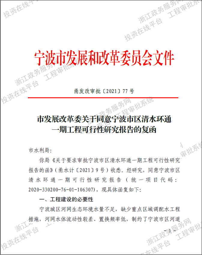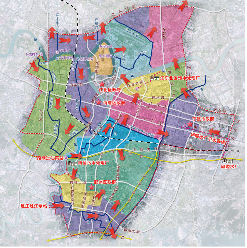 寧波市區(qū)清水環(huán)通一期工程西起機場高架、東至福慶路,北起北環(huán)高架,南至鄞州大道,面積合計約146km2,是寧波市區(qū)重要的河網(wǎng)引配水工程,亦是緩解老城內(nèi)澇壓力的有力舉措。為提升河網(wǎng)環(huán)境用水量、促進水系互聯(lián)互通、改善水體流態(tài),寧波市區(qū)清水環(huán)通一期工程創(chuàng)新性的引入“精準補水、高速水路”的計理念,切實解決了寧波城區(qū)現(xiàn)狀大水漫灌的河網(wǎng)調(diào)水模式下調(diào)水效率低下、補水針對性不強等痛點、難點問題。該工程可研報告于2021年5月獲寧波市發(fā)展和改革委員會批復。