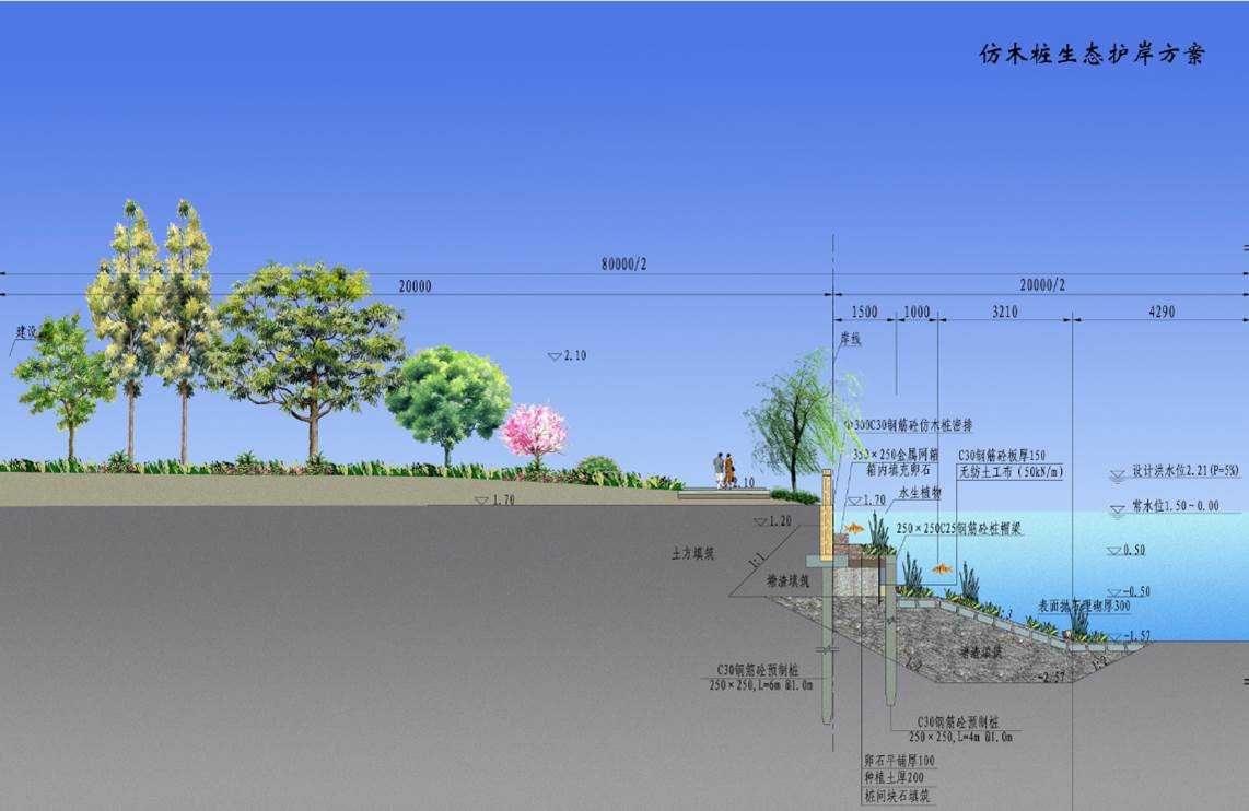 工程位于海曙區(qū)西側(cè),南起鄞江,北至姚江,為實現(xiàn)對海曙西側(cè)山區(qū)洪水的攔截,共整治河道長24km,建設閘站40座,閘門總凈寬554m,泵站22m3/s,改建新建橋梁42座。其中有3.5km與G228國道并線,為協(xié)調(diào)國道與河道之間用地布局,通過優(yōu)化河道斷面型式和堤線線位,實現(xiàn)了對土地的集約利用,打造一條海曙西部交通和河道的靚麗風景線。