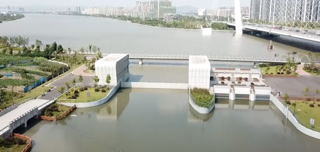 工程規(guī)劃與區(qū)域發(fā)展規(guī)劃高度融合,打通了原洞船河與姚江之間的“斷頭路”,提高了鄞西平原城區(qū)的防洪排澇能力。項(xiàng)目建筑設(shè)計(jì)與周邊環(huán)境完美結(jié)合。泵站及閘門上部采用無廠房設(shè)計(jì),水泵機(jī)組采用立式潛水機(jī)組,閘門采用底軸驅(qū)動(dòng)翻板門,泵站上下游視野通透,觀感效果佳。管理房屋頂設(shè)計(jì)為綠化屋頂,管理房隱藏于周邊綠化之中,滿足姚江岸高標(biāo)準(zhǔn)景觀要求。生態(tài)河道設(shè)計(jì)符合人文和諧之美。護(hù)岸采用干壘生態(tài)擋塊,中間預(yù)留魚槽設(shè)計(jì),充分體現(xiàn)了生態(tài)環(huán)保設(shè)計(jì)理念。