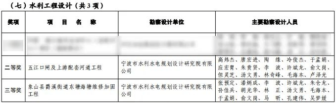 近日,2023年度寧波市優(yōu)秀勘察設(shè)計(jì)獎(jiǎng)評選結(jié)果出爐,我院設(shè)計(jì)的五江口閘及上游配套河道工程和象山縣爵溪街道東塘海塘維修加固工程分別榮獲水利工程設(shè)計(jì)組二等獎(jiǎng)和三等獎(jiǎng)!
