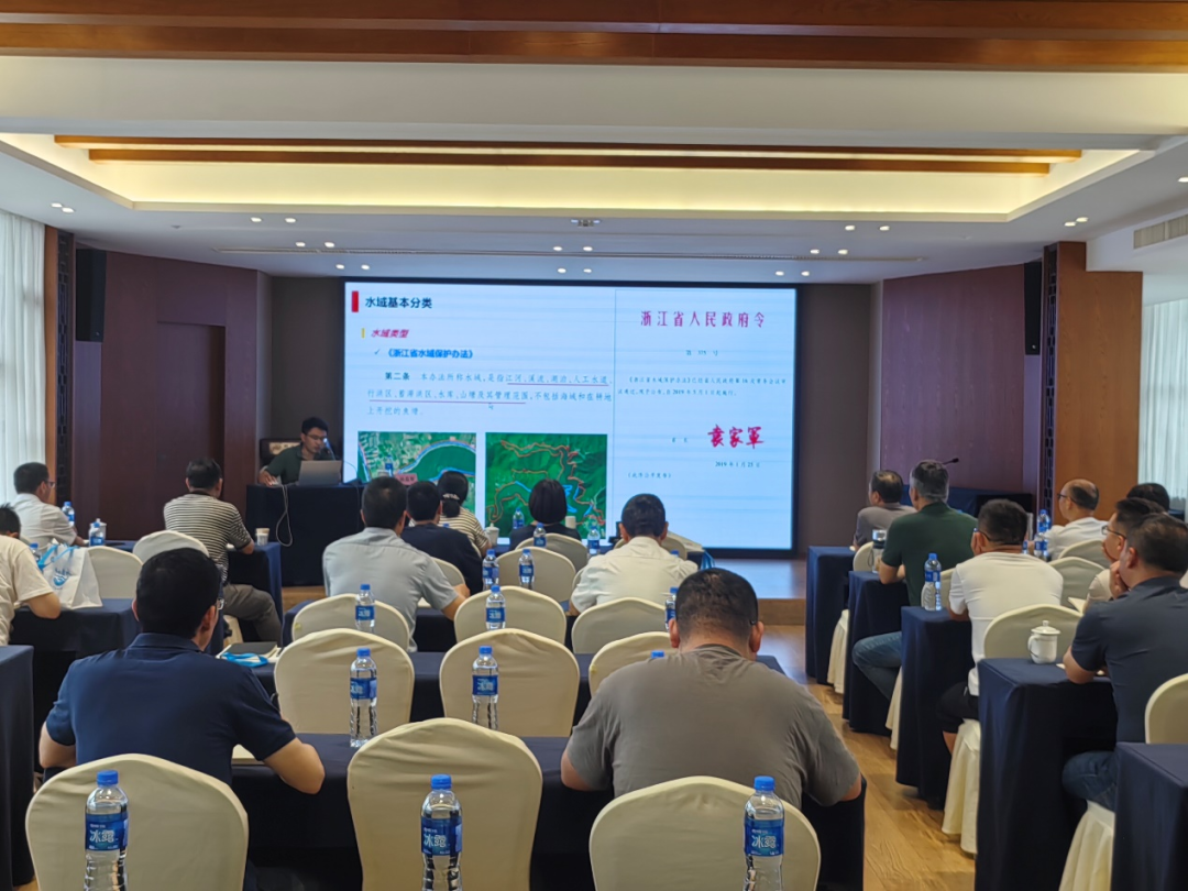 培訓(xùn)現(xiàn)場,我院規(guī)劃四所所長楊益青憑借其扎實(shí)的學(xué)術(shù)功底與豐富的實(shí)踐經(jīng)驗(yàn),生動(dòng)呈現(xiàn)了海曙區(qū)這一歷史與現(xiàn)代交融之地的水文畫卷。他從水域基本分類出發(fā),清晰介紹劃分區(qū)內(nèi)河道、湖泊、水庫、山塘等各類水域,為參訓(xùn)人員構(gòu)建起海曙區(qū)水系結(jié)構(gòu)基本框架;隨后,依托《海曙區(qū)水域調(diào)查》的研究成果,系統(tǒng)介紹了當(dāng)前水域的分布情況、水域功能等關(guān)鍵信息,并緊扣《海曙區(qū)水域保護(hù)規(guī)劃》,深入淺出地闡述了未來水域的規(guī)劃布局。最后依托我院在該領(lǐng)域的最新技術(shù)和成功案例,結(jié)合水域歷史演變及近期變化,分享我院在水域管理保護(hù)方面的典型辦法和先進(jìn)舉措。